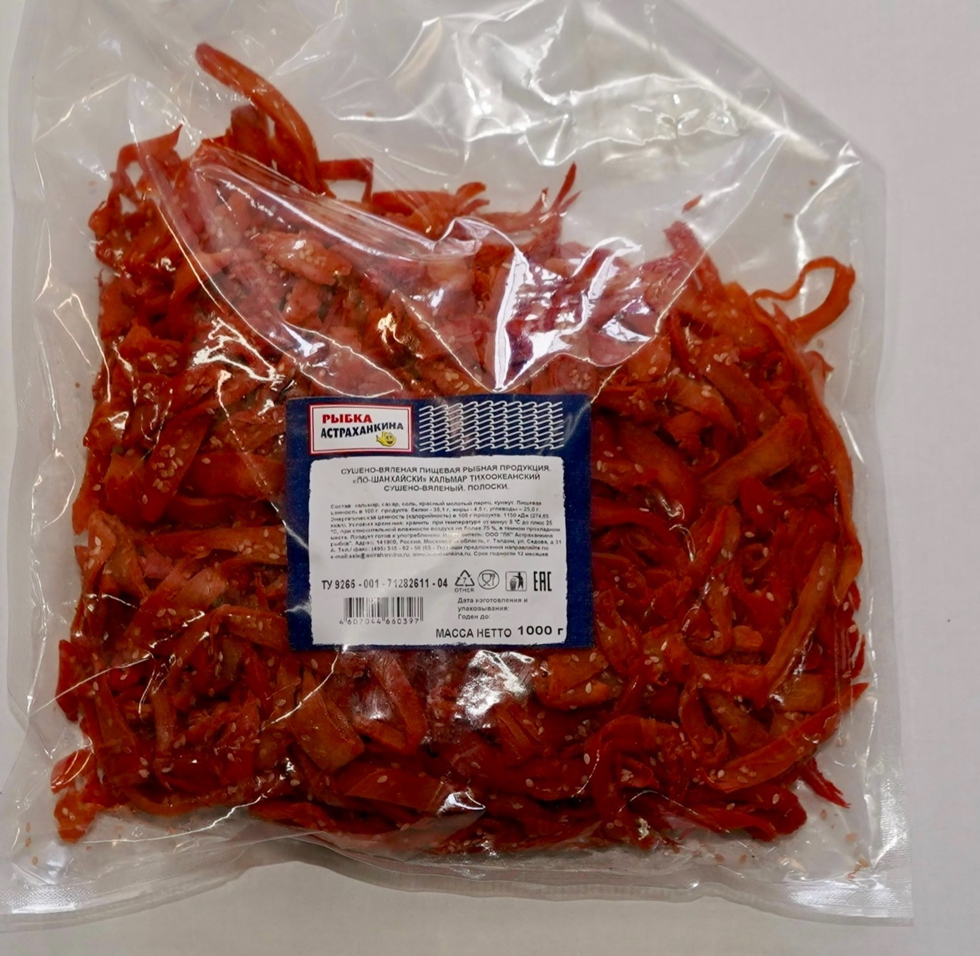 Рваный кальмар "по-Шанхайски" -это отличный снек и оригинальная закуска к любимому пенному напитку. Кусочки кальмара имеют нежную бархатистую структуру, с пикантным островатым но в то же время сладковато-солёным вкусом легко жуются и прекрасно сочетаются с пивом. Среди снеков сушено-вяленые кальмары считаются деликатесом - они отличаются привлекательным вкусом и повышенной пищевой ценностью. Для производства используется тихоокеанский кальмар. Щадящая технология переработки позволяет сохранить природный вкус, цвет морепродукта и питательные вещества. Большая упаковка 1кг прекрасно подходит для большой, дружной компании